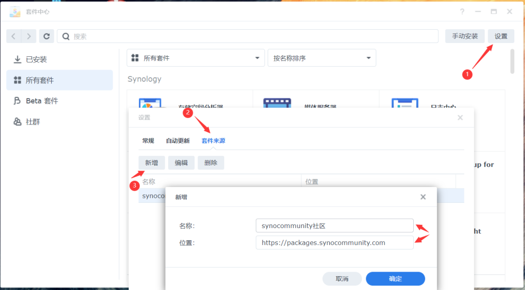 ,位置填写https://packages.synocommunity.com