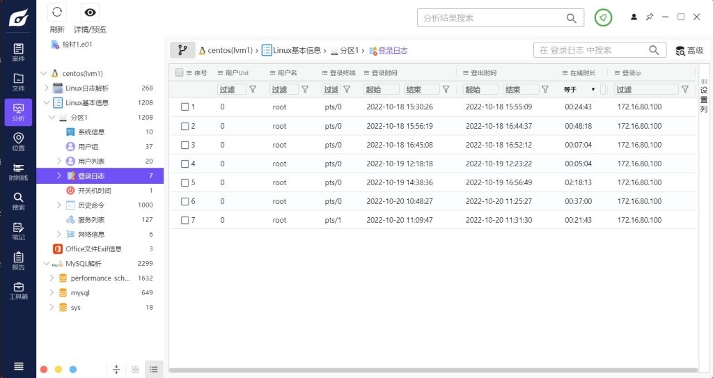 火眼查看登录日志即可得出答案,顺手把材料2解压了.