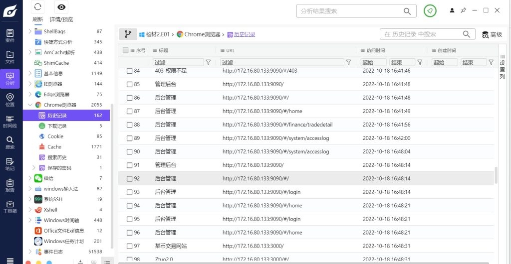 (方法2)可以查看之前用问题2答案解压的检材2,发现其浏览器历史记录有访问过管理后台,其端口为9090