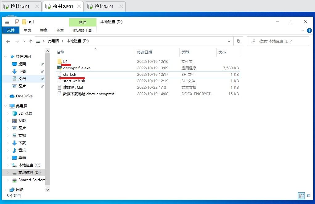 PS:在查看检材2的时候也可以在其虚拟机的D盘发现在检材1历史命令中删除的网站一键启动脚start_web.sh