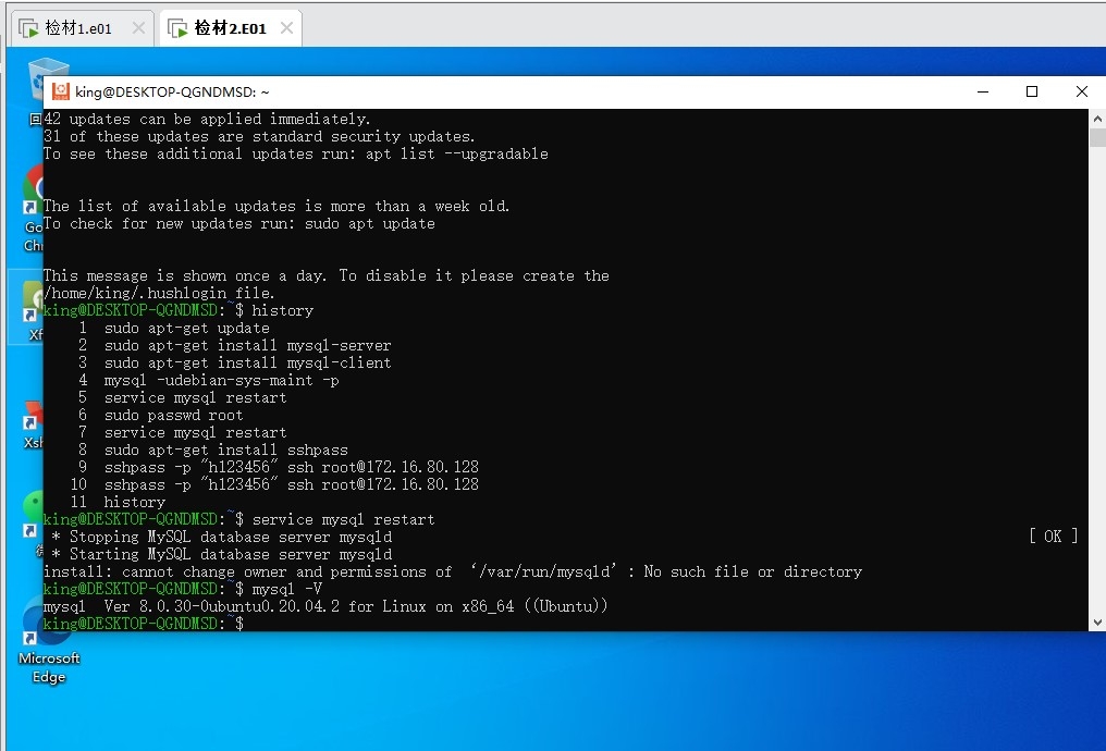 到wsl里看历史命令,发现装有mysql,启动后查看版本