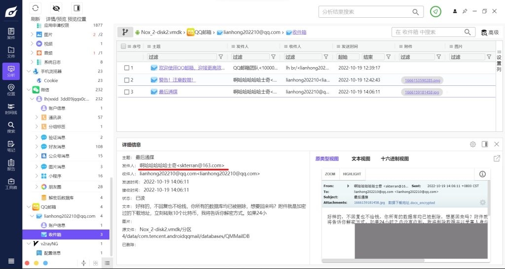 40. 检材4中,发送勒索邮件的邮箱地址为