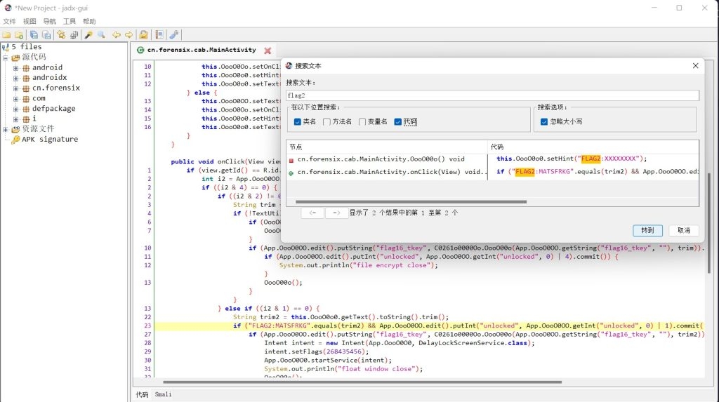48. 解锁第一关所使用的FLAG2值为(FLAG为8位字符串,如需在apk中输入FLAG,请输入完整内容,如输入FLAG9:QWERT123)