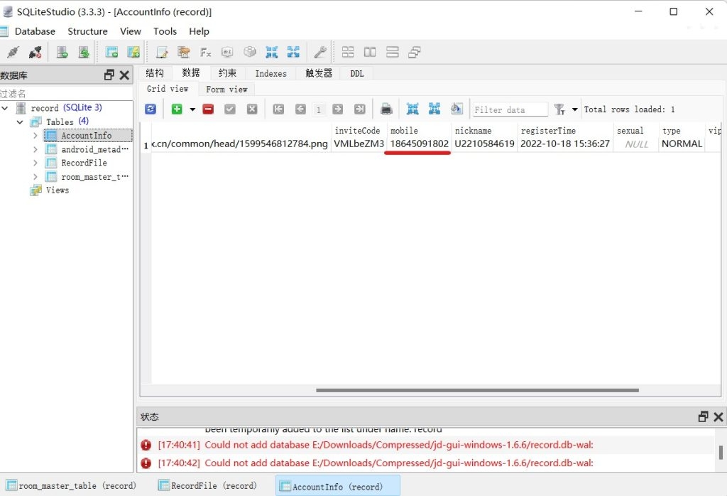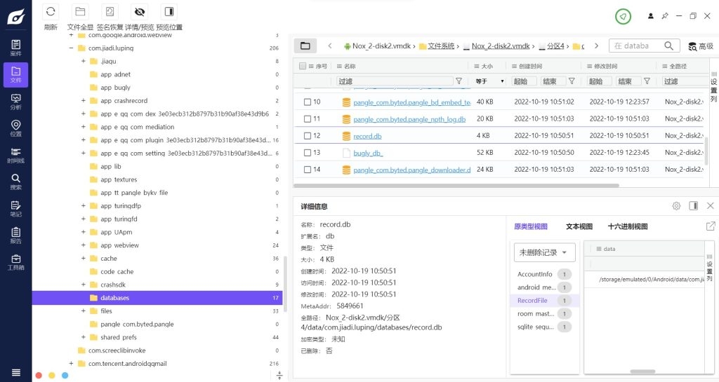 到该应用路径分区4\data\com.jiadi.luping\databases