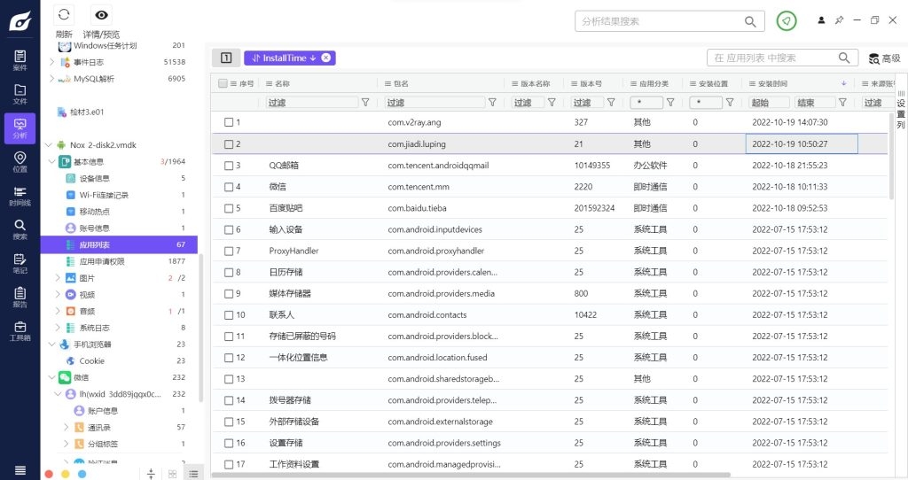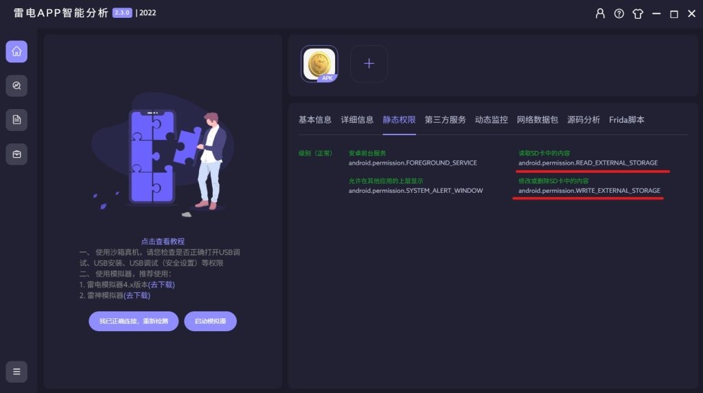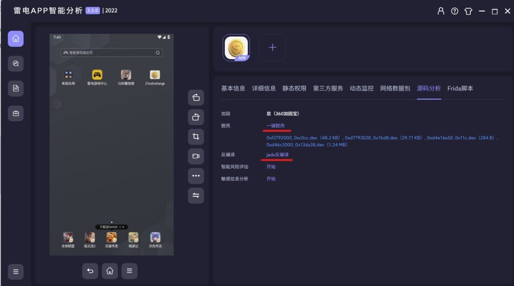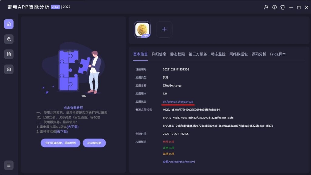 apk包可以通过检材1网站页面的二维码下载,放入雷电app分析工具分析即可