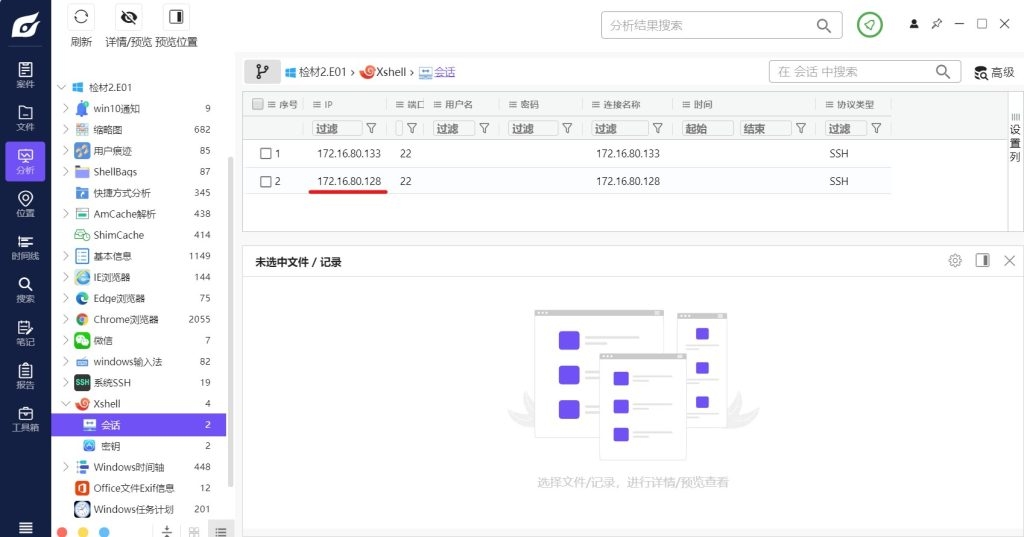 用火眼查看到xshell有两个连接,133是检材1的ip,另一个就是我们要的答案