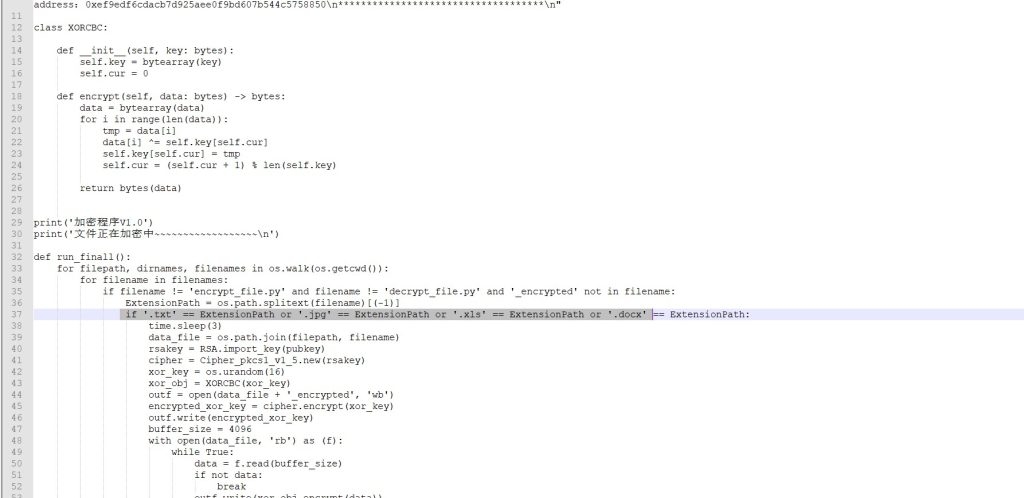 ,输出后复制出来,发现其代码会对txt.jpg.docx.xls格式进行加密