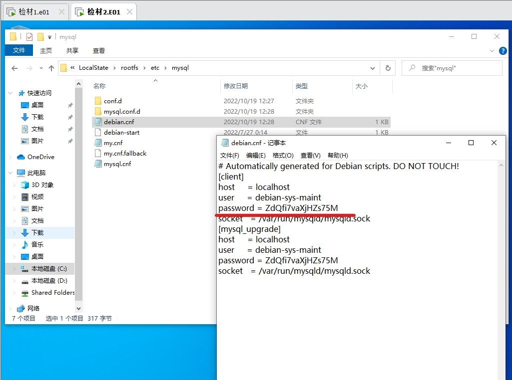 根据网上查到的信息,知道该用户初始密码会保存在/etc/mysql/debian.cnf